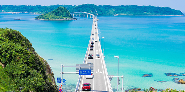 山口県は下関から角島大橋を渡る海沿いドライブコース