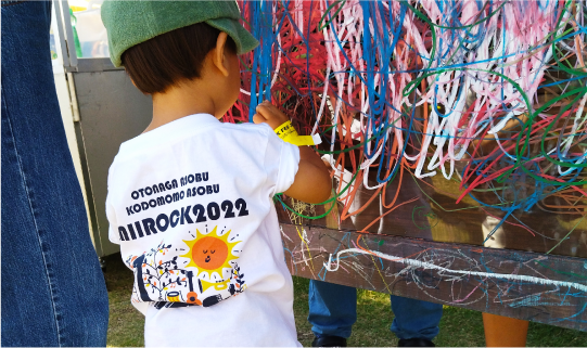 0歳から楽しめる音楽フェス♪みいロックさんは、地域の子ども達や子育て世帯に生の音楽や芸術をもっと身近に感じてほしいという思いから、無料で気軽に参加できるイベントとして2019年から開催しています。ラブラボは、オリジナルTシャツとトートバッグ、タオルマフラーを作成させていただきました。