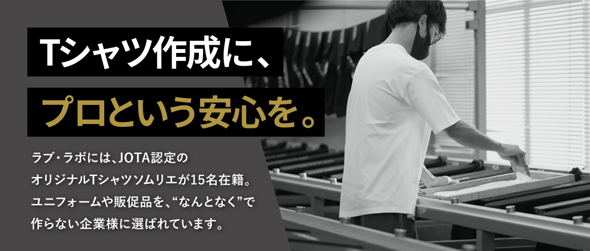オリジナルTシャツトップ 企業情報 ABOUT企業情報 株式会社ラブ・ラボにまつわるあれこれをご紹介するページです。 ラブラボとは 英語表記のRUB-LAB.にはラブ(RUB)は刷り込む、ラボ(LAB)は、LABORATORY、研究・開発する、と言う意味があります。 スタッフ一同、オリジナルウェア・グッズの製作を通して世の中がもっとゆかいに、もっと楽しくなればと思い日々精進しております。 代表挨拶 スタッフ紹介 ショールーム紹介 ラブ・ラボの活動 実績紹介 工場設備のご紹介 プリントのプロがいる会社 ご注文・お問い合わせ方法