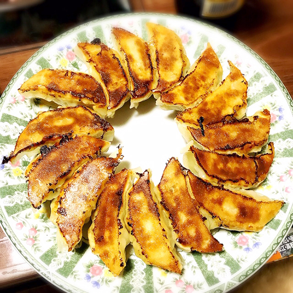 餃子です。といっても、一から作るわけではありません!冷凍餃子(チルド餃子でも可)をいかに良い焼き加減で焼き上げるか、に神経を注いでいます。