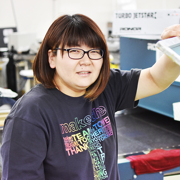 優子さんはおっとり癒し系キャラです!優子だけあって優しい性格の持ち主! キャリアは20年以上と大ベテラン!プリントの事ならなんでもお任せ! プリントの速さ!キレイさはピカイチ!ゴッドハンドから生み出される商品は お客様のリピートも絶えません!頼りになる先輩です!