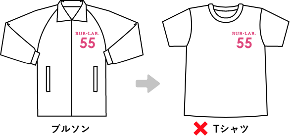 プリントカラーの変更可能例えば、初回注文時「白のTシャツに黒のプリント」だったところを、追加注文は「水色のパーカに青プリント」といったご注文も可能です。