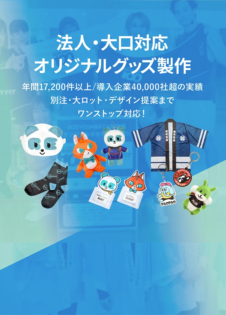 ファングッズから企業ノベルティまでOK。