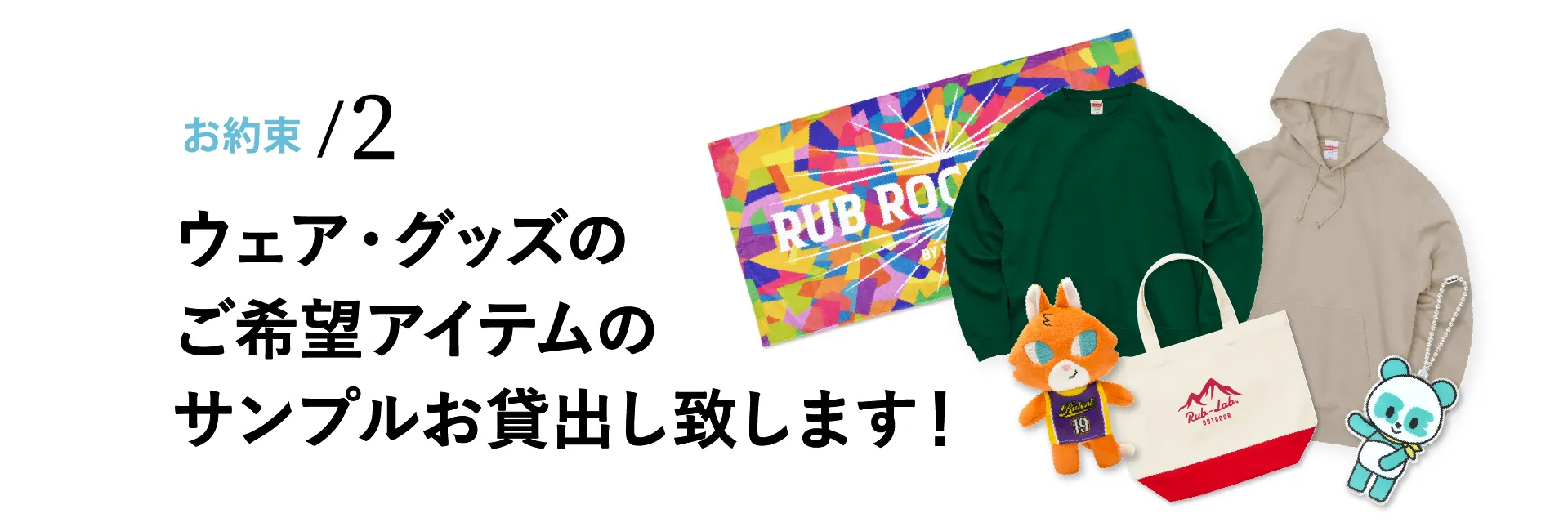 スポーツイベント、エンタメグッズ、販促ノベルティ、OEM製品など、シーンやターゲットに合わせた最適なご提案が可能です。