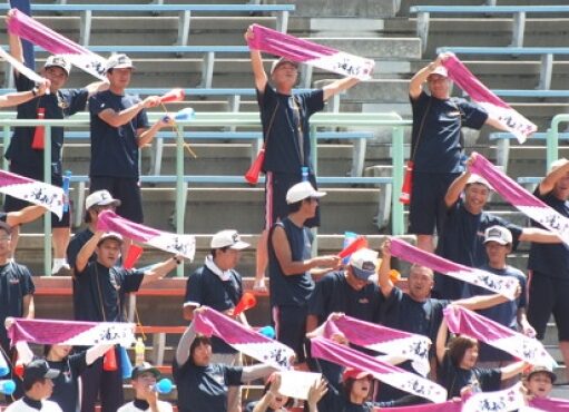 春・夏の全国大会出場回数を、「さくら」、「☆」の数を増やす事でデザインを考えました。