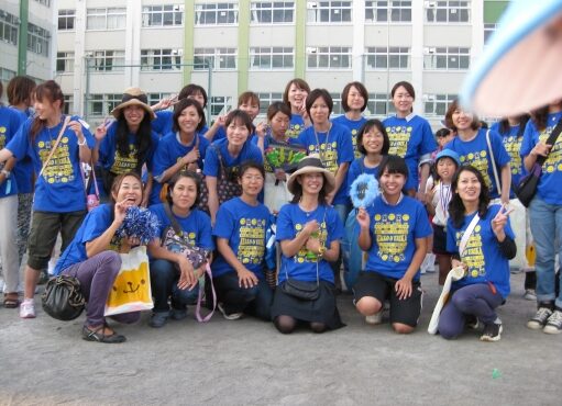 お母さん方でそろって着用していただいて、青に黄色がとても映えますね★