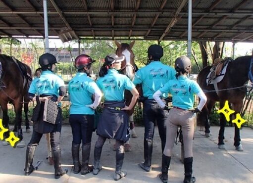 乗馬中は、デザインが、みえませんが、騎乗前や、騎乗後の馬の手入れの時など、すっかり人気者の気分です。