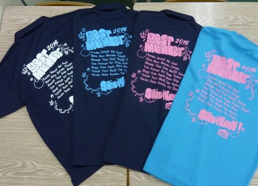 今年は女子が多かったので、可愛いデザインになっていますが、ラブ・ラボさんのテンプレートを使わせてもらいました。いつもはポロシャツ本体の色を変えていましたが、今年はインク色だけ変えてみました。
