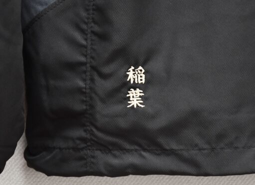 背中の左裾にシルバーの糸で入れた個人名刺繍が