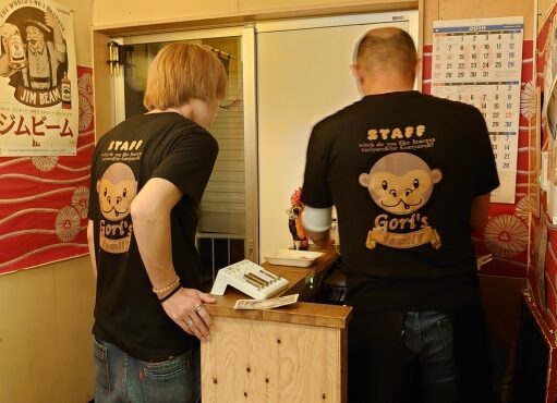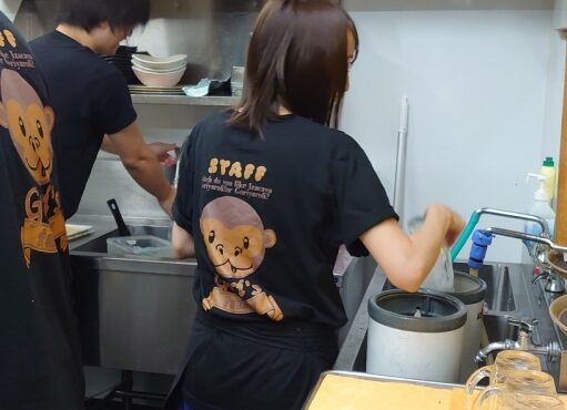フランチャイズの居酒屋をオープンしてから協賛のTシャツを使用しての営業スタイル。