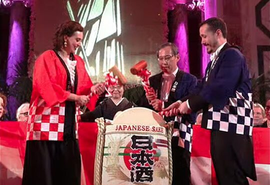 法律家協会会長がハッピを着て鏡割りをしました。