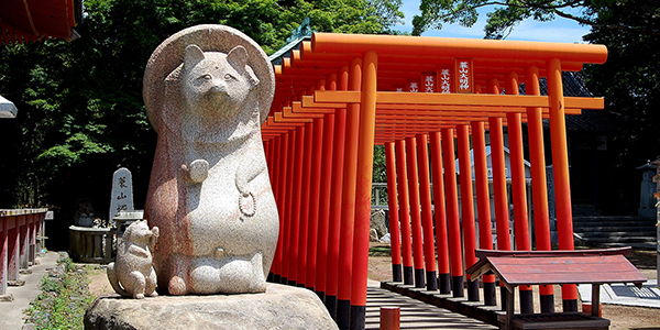 境内にある二匹のたぬきの像がとてもユーモラスで温かい気持ちにさせてくれます。