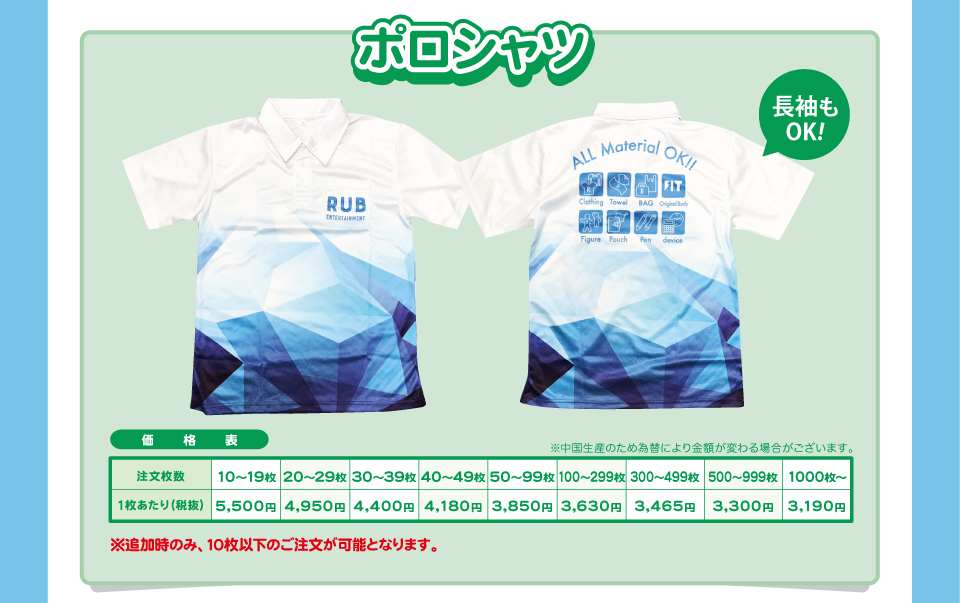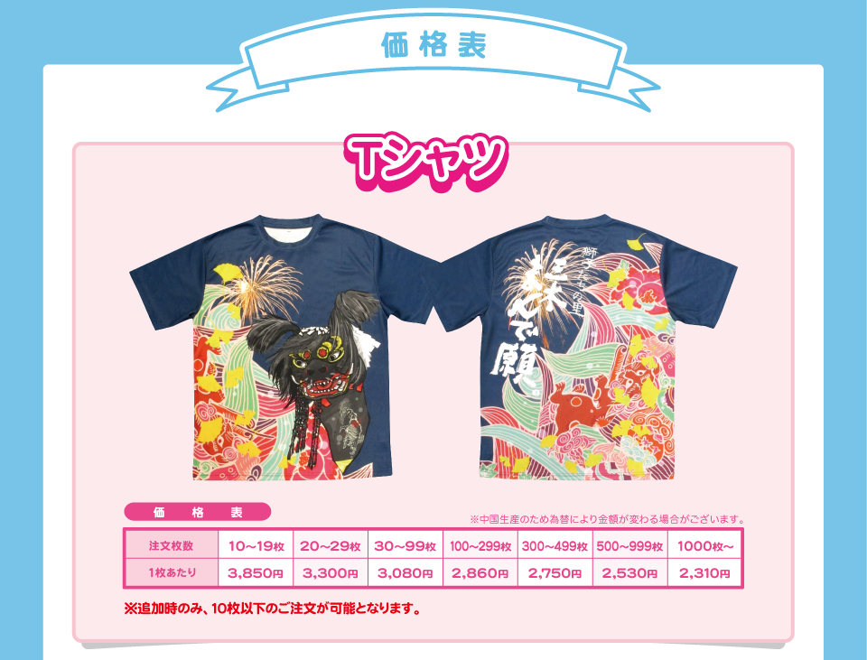 最小オーダー数 10枚~ 参考価格(100枚ご注文時) 3,900円 -