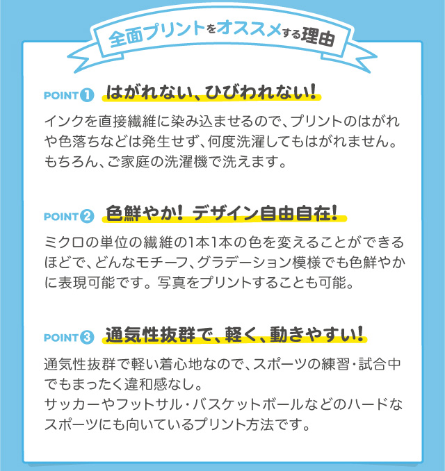 全面プリントウェアの特長