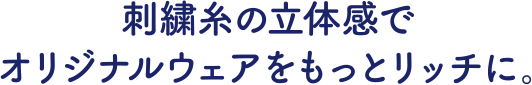 刺繍糸の立体感でオリジナルウェアをもっとリッチに。 刺繍糸の立体感でオリジナルウェアをもっとリッチに。