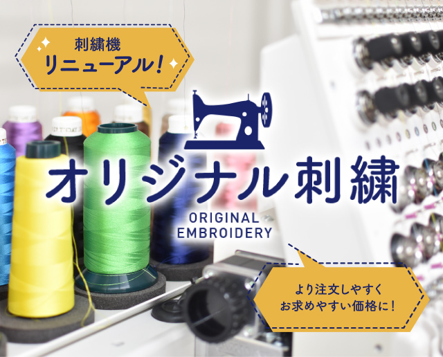 刺繍機リニューアル!オリジナル刺繍 より注文しやすくお求めやすい価格に! 刺繍機リニューアル!オリジナル刺繍 より注文しやすくお求めやすい価格に!
