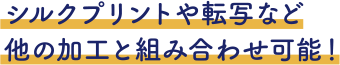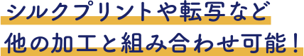 • シルクプリントや転写など他の加工と組み合わせ可能! シルクプリントや転写など他の加工と組み合わせ可能!