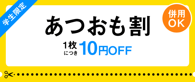 - ・学生特典(高校生限定)として、合計金額が税込2,500円以上300,000円以内で、ご利用いただけます。