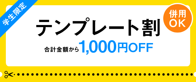 から 1,000円 OFFテンプレートデザインの利用(文字・色は変更OK)でお得・お手軽に注文が可能♪