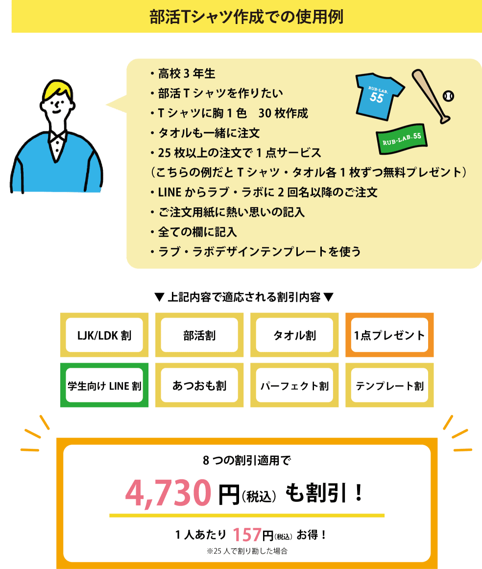 部活で使用するTシャツの場合、部活名を記入していただくと、割引になります!