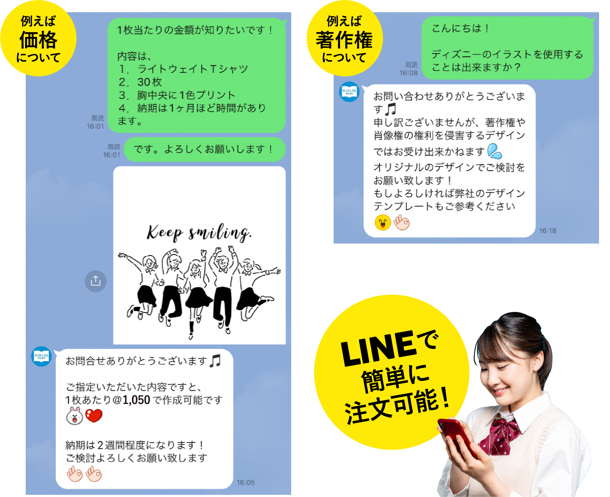 また、インクカラーが全て同じでウェアカラーをバラバラにするだけであれば、追加料金は不要です。 -