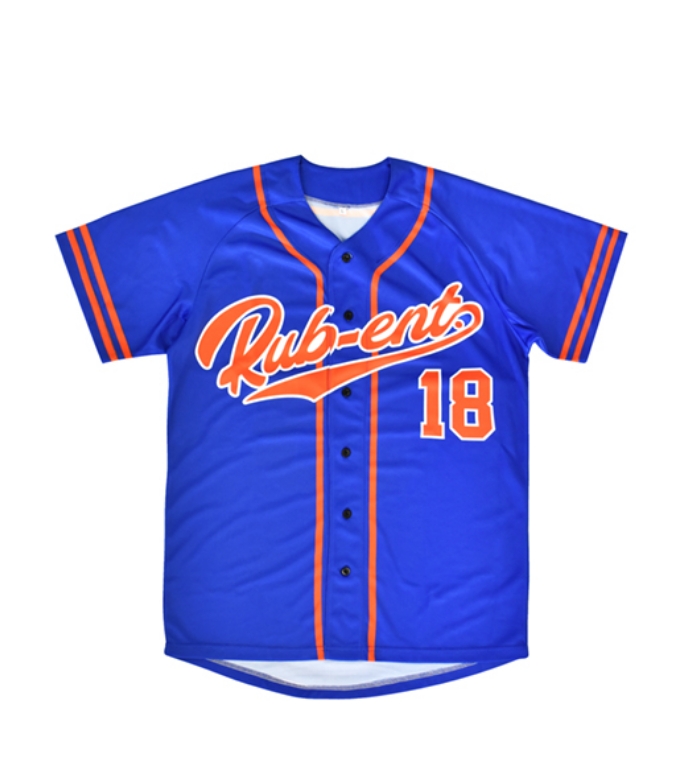 昇華転写により全面プリントが出来るベースボールシャツ。