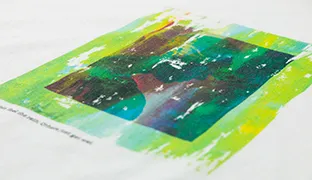 (フルカラープリント)Tシャツに直接インクを吹き付けてプリントする方法です。柔らかくなめらかな仕上がりに。製版しない方法なので1枚からプリントでき、フルカラー対応で写真やグラデーションなど細かいデザインの表現に最適。鮮やかな色彩表現が可能な高品質インクジェットプリンターを導入しており 通常のCMYKカラーに、R(赤)とG(緑)の2色を加えた6色インクを使用。幅広い色域で、写真やイラストなどを鮮やかに表現します。