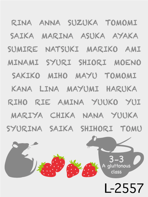 オリジナルTシャツトップ デザインガイド デザインテンプレート集 hp_429 L-2557 食べ過ぎちゃったネズミさんがかわいい印象をのこします #ネズミ #ネズミ #いちご #いちご #かわいい #クラスTシャツ #クラスTシャツ #名前 #コップ #カップ 配色例 C-26 C-59 ※背景色は配色例に含まれておりません。 ※モニター上の環境設定により実際のインクと違う場合がございます。 お問合せをする デザインシュミレーターで確認してみる HISTORY 最近チェックしたデザイン CATEGORY オリジナルTシャツ デザインテンプレートカテゴリー クラスTおそろい クラブ・部活・スポーツ 音楽バンド 文字 動物 エンブレム・ワッペン イベント・行事 職業 タオル アイドル・アーティスト・応援 その他 デザインシミュレーターを 使ってみよう! フォントのイメージはデザインシュミレーターを使って簡単に確認できます。 PCでもスマホからでもOK。 実際に気に入った書体・フォントを入れ込んでイメージを確認してみましょう。 \ 書体でお困りなら / 書体一覧はこちら \ デザインがお決まりなら / デザイン入稿フォームはこちら ご注文・お問い合わせ方法