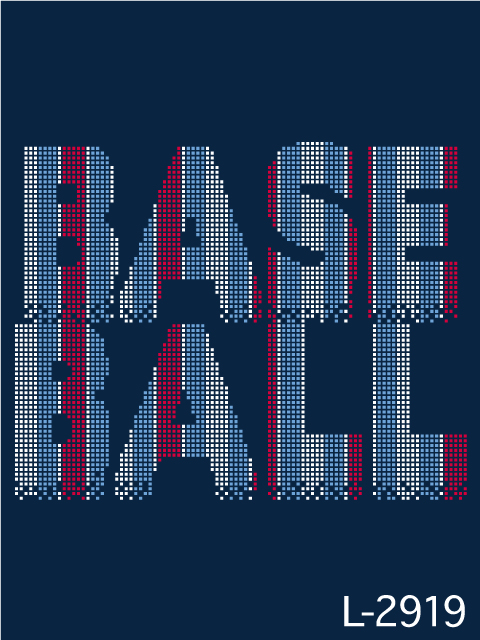 BASEBALLの文字を小さい■で書いています。遠くで見るのと近くでみるのとで印象が変わる飽きのこないデザインです。