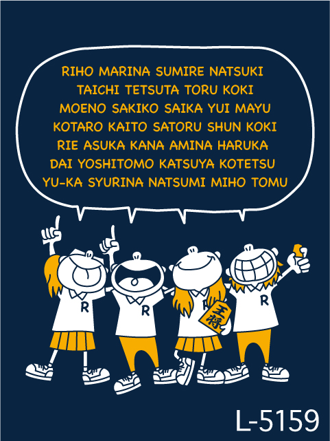 オリジナルTシャツトップ デザインガイド デザインテンプレート集 dm_1737 L-5159 肩を組んだポップなキャラクターが大人気のデザイン。いろんな部活ごとのデザインがあるので、気になったら問い合わせてみてくださいね。 #キャラクター.ポップ #かわいい #元気 #型組み #チームワーク #団結 #部活 #文化祭 #部活動 #文化部 #将棋部 配色例 C-21 C-50 ※背景色は配色例に含まれておりません。 ※モニター上の環境設定により実際のインクと違う場合がございます。 お問合せをする HISTORY 最近チェックしたデザイン CATEGORY オリジナルTシャツ デザインテンプレートカテゴリー クラスTおそろい クラブ・部活・スポーツ 音楽バンド 文字 動物 エンブレム・ワッペン イベント・行事 職業 タオル アイドル・アーティスト・応援 その他 デザインシミュレーターを 使ってみよう! フォントのイメージはデザインシュミレーターを使って簡単に確認できます。 PCでもスマホからでもOK。 実際に気に入った書体・フォントを入れ込んでイメージを確認してみましょう。 \ 書体でお困りなら / 書体一覧はこちら \ デザインがお決まりなら / デザイン入稿フォームはこちら ご注文・お問い合わせ方法