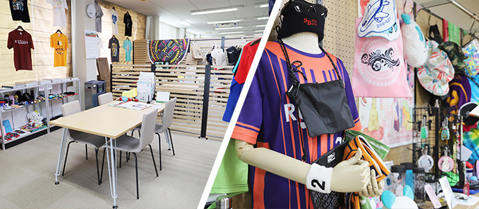 JR渋谷駅から徒歩3分。Tシャツやタオルはもちろん、各種グッズのお問い合わせも大歓迎!