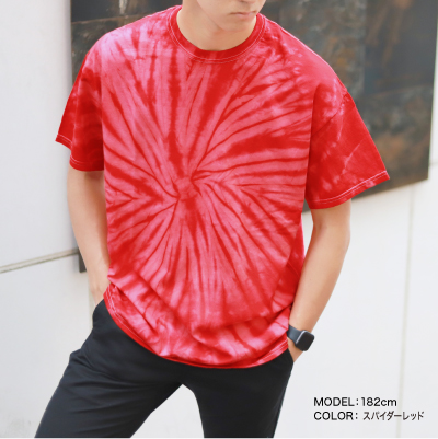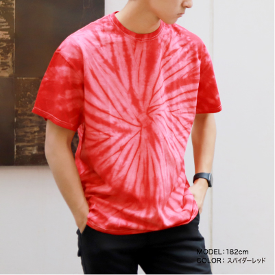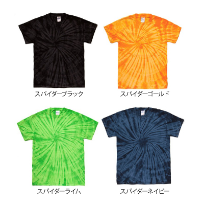 TD1000SpiderTee スパイダーティーは、シンプルながらもインパクトのある定番のスパイダー柄タイダイTシャツです。職人が手作業にて染色している為、柄や色の入り方、模様に個体差があり、同じ模様はひとつとしてありません。