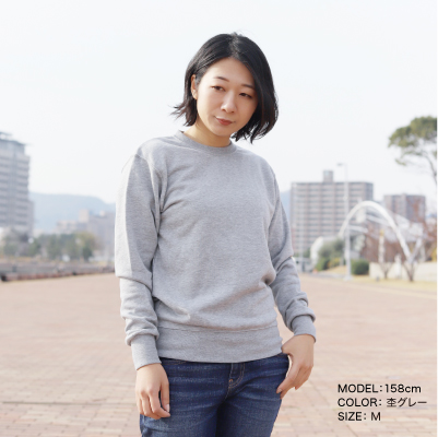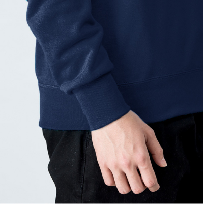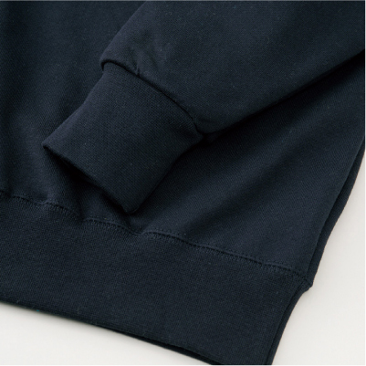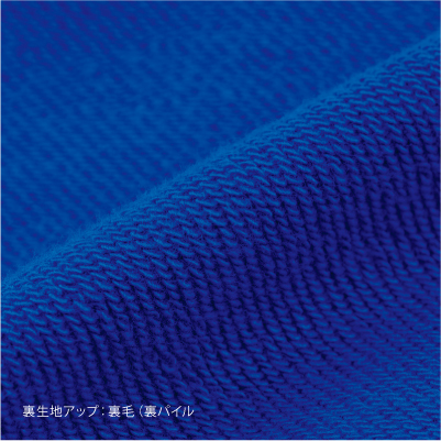 しっかりとした9.7オンスの生地は表は天竺編み目で、裏糸をタオルのようなパイル状に編み込んで浮かせた肌触りの良い生地です。裏パイルとも呼ばれ、吸湿性の高さからスウェット類によく使われます。幅広いサイズ展開で普段使いはもちろん、チームウェア、イベント、トレーニングウェアなど様々なシーンでお使いいただけます。