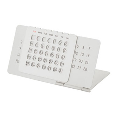 アルミ万年カレンダー(TS1132)は、スマートな見た目の卓上カレンダーです。表のプレートを移動して調整することで、ずっと使えるので経済的です。シンプルなデザインなのでオフィスや受付など、どこで使っても風景に馴染みますし、非常にコンパクトなので場所も取りません。