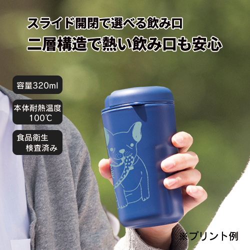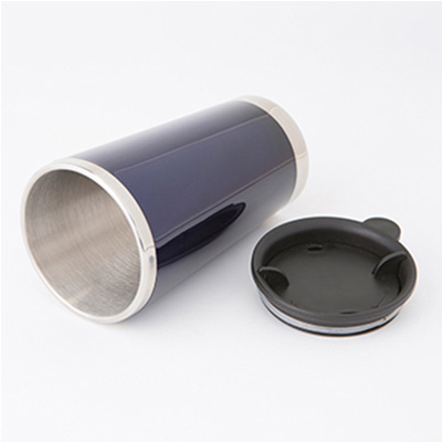 フタをスライド回転させて開け閉めするタイプのタンブラーです。ステンレスの質感が、上質な印象を与えてくれます。