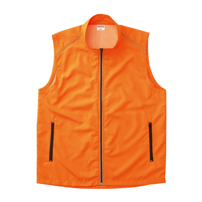背フラシ仕様の為、背中の一部が開くようになっており通気性が良く、季節を問わずご使用いただけます。背フラシの裏面はメッシュ仕様になっています。背面のプリントは、背上部または裾等にいれるのがおすすめ!高密度タフタを採用しており薄くて軽やか、透湿撥水にもすぐれています。また、反射素材でパイピングが施されているため、夜間のイベントでも活躍します!お祭りのスタッフ用やPTAの夜回り活動などのベストとしてのご利用がおすすめです!