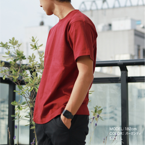 0594201 6.2オンスプレミアムTシャツは、長く着られる丈夫さが魅力。厚手なのに肌触りの良さがポイントのロングセラー商品。6.2オンスの生地は上質な生地で縫製され、首回りが特に丈夫で型崩れの心配なし。しっかり感のある生地とアメリカンスタイルのシルエットは、様々なプライベートシーンにマッチ。