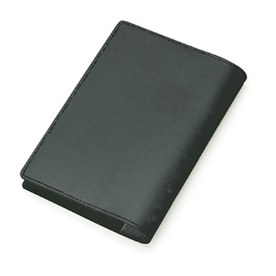 ブックマークとして使える便利な切り込みがポイントのレザータイプのブックカバーです。高級ノベルティグッズとしておすすめ。