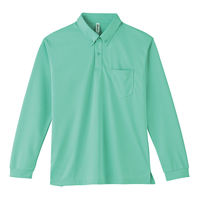 速乾性抜群でUVカット機能付きの長袖ポロシャツです。ボタンダウンでかっちりとした印象があるので、作業服としてや企業のユニフォームにもおすすめ。