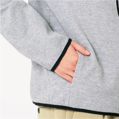定番カラーとビビッドなカラー展開に加え、キッズサイズがあるのも魅力。ブラックのジップとパイピングがアクセントになっています。7.7オンスドライスウェットパンツ(00343)とセットアップが可能です。
