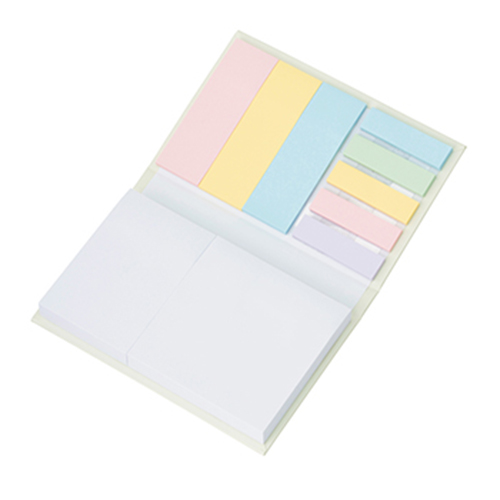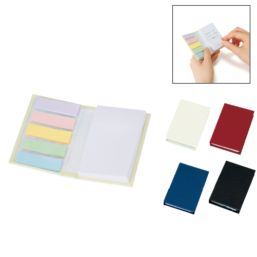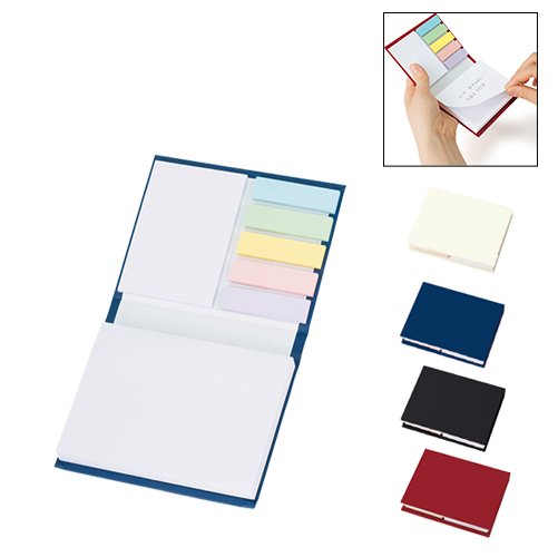 マルチメモ(L)(TS1026)は、4サイズの付箋を使用用途によって使い分けられる、便利なブックタイプの付箋セットです。本のような装丁と適度な重さが、ノベルティとして重要な「もらった感」を与えます。使い勝手が良いので、様々なシーンでご使用いただけます。