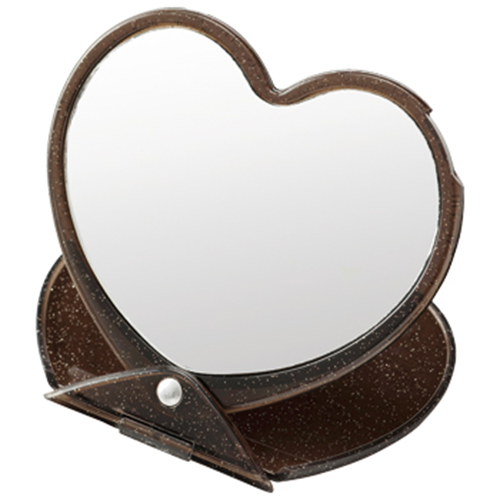 ハート型の表面フタがスライドで鏡面台に早変わり!単色プリントはもちろん、フルカラープリントにも対応。ラメ入りでかわいさ更にアップ!