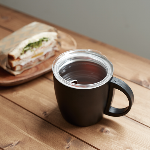アウトドアスタイルを気軽に楽しむ機能的サーモマグです。フタ付きなので飲み物の温度が変化しづらく、ほこりが入るのも防いでくれます。