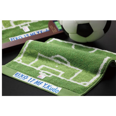 リアルサッカータオル(IMB003)は、世界的に見ても珍しい、4色の糸のジャガード織で表現された、最高級品質の今治タオルです。サッカーのフィールドを模しており、個人個人のお名前を入れられることに加え、1枚ずつ箱入れも可能ですので、卒部・卒団記念品として重宝するアイテムです。