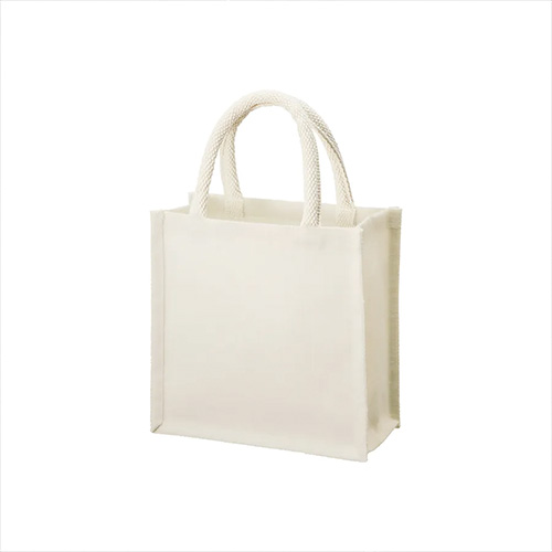ジュートスクエアトート(S)(TR1004)は、地球にやさしいジュート(麻の1種)という天然素材を使用しています。ジュートは、コーヒー豆が入った大きな麻袋に使用されており、荒い生地目で少しチクチク毛羽立ったナチュラルな素材感です。