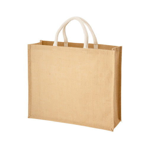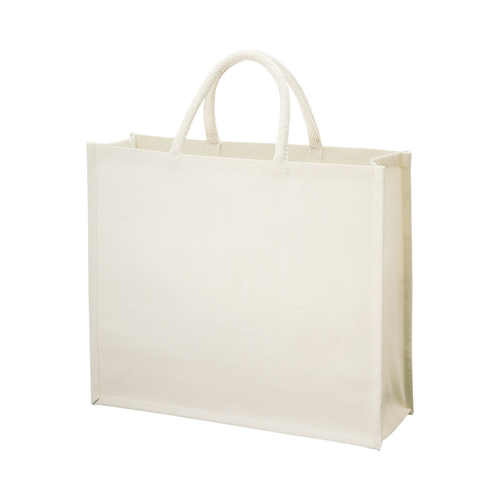ジュートスクエアトート(L)(TR1006)は地球にやさしいジュート(麻の1種)という天然素材を使用しています。ジュートは、コーヒー豆が入った大きな麻袋に使用されており、荒い生地目で少しチクチク毛羽立ったナチュラルな素材感です。