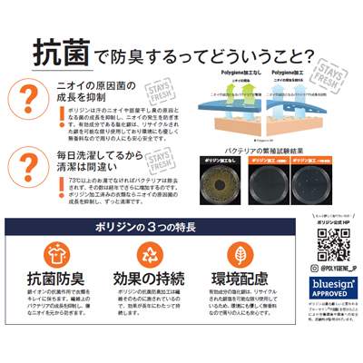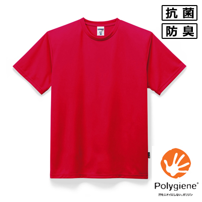 4.3オンスドライTシャツ(ポリジン加工)(MS1154)は、Polygiene(ポリジン)と言われる銀イオンによる抗菌防臭加工が施された高機能Tシャツです。値段や丈夫さで人気のポリエステルドライTシャツの弱点である、ニオイを科学して解消してくれる最強の1枚。