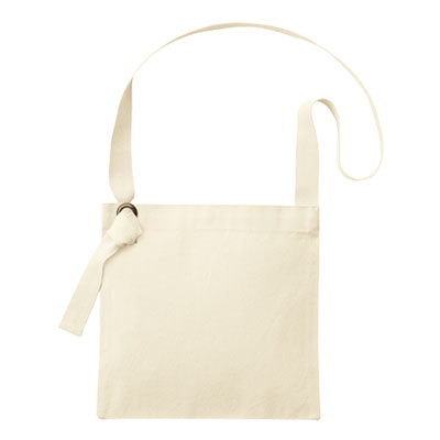 口元はホックボタン付きとなっており、ハトメが付いているのでショルダーをお好みの長さに調整してお使い頂けます。ショルダー部分にコットンテープを使用することで、デザイン性にもこだわったサコッシュです。アパレルブランドの購入特典やキャンペーンのノベルティなど、幅広くご提案頂けます。