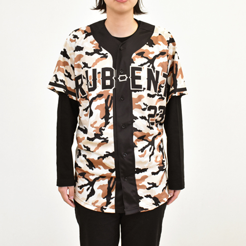 昇華転写により全面プリントが出来るベースボールシャツ。