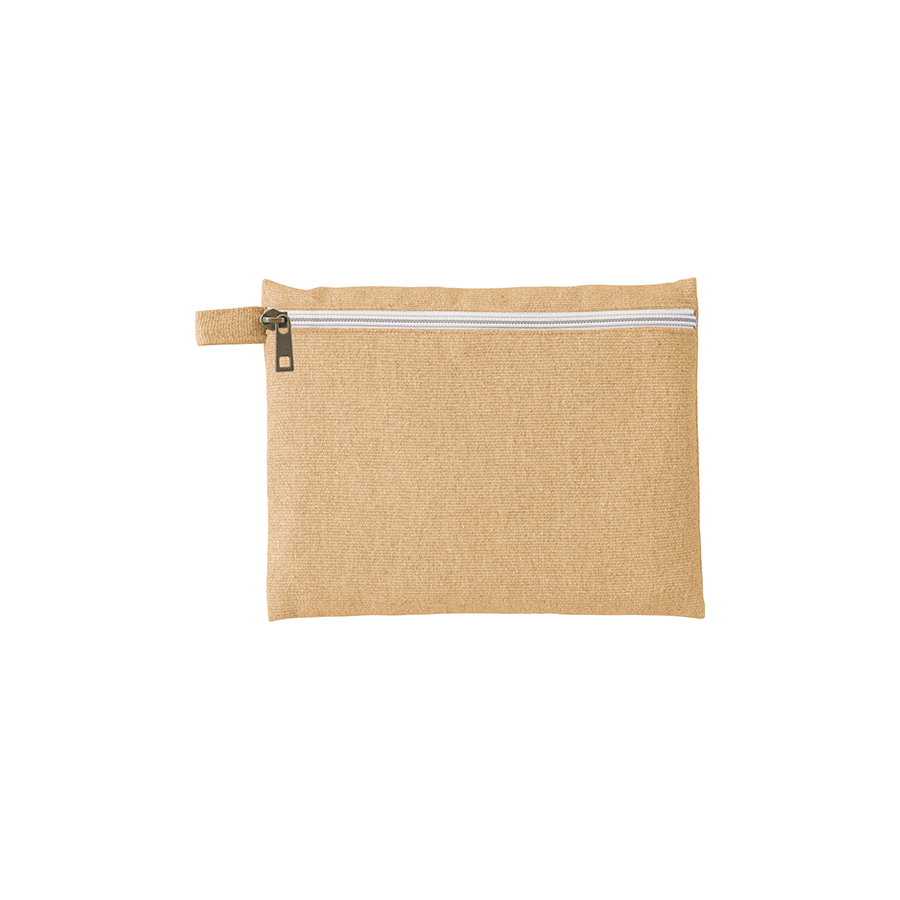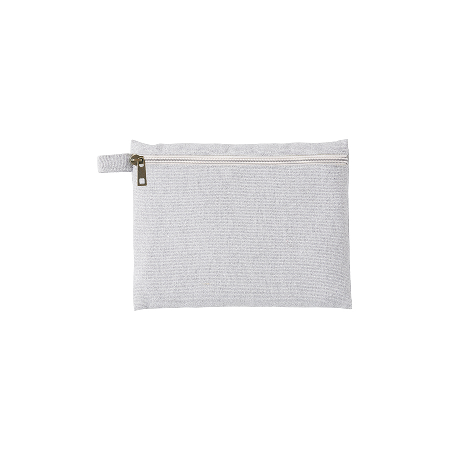 再生素材を使用した、普段使いしやすいフラット形状タイプのポーチです。